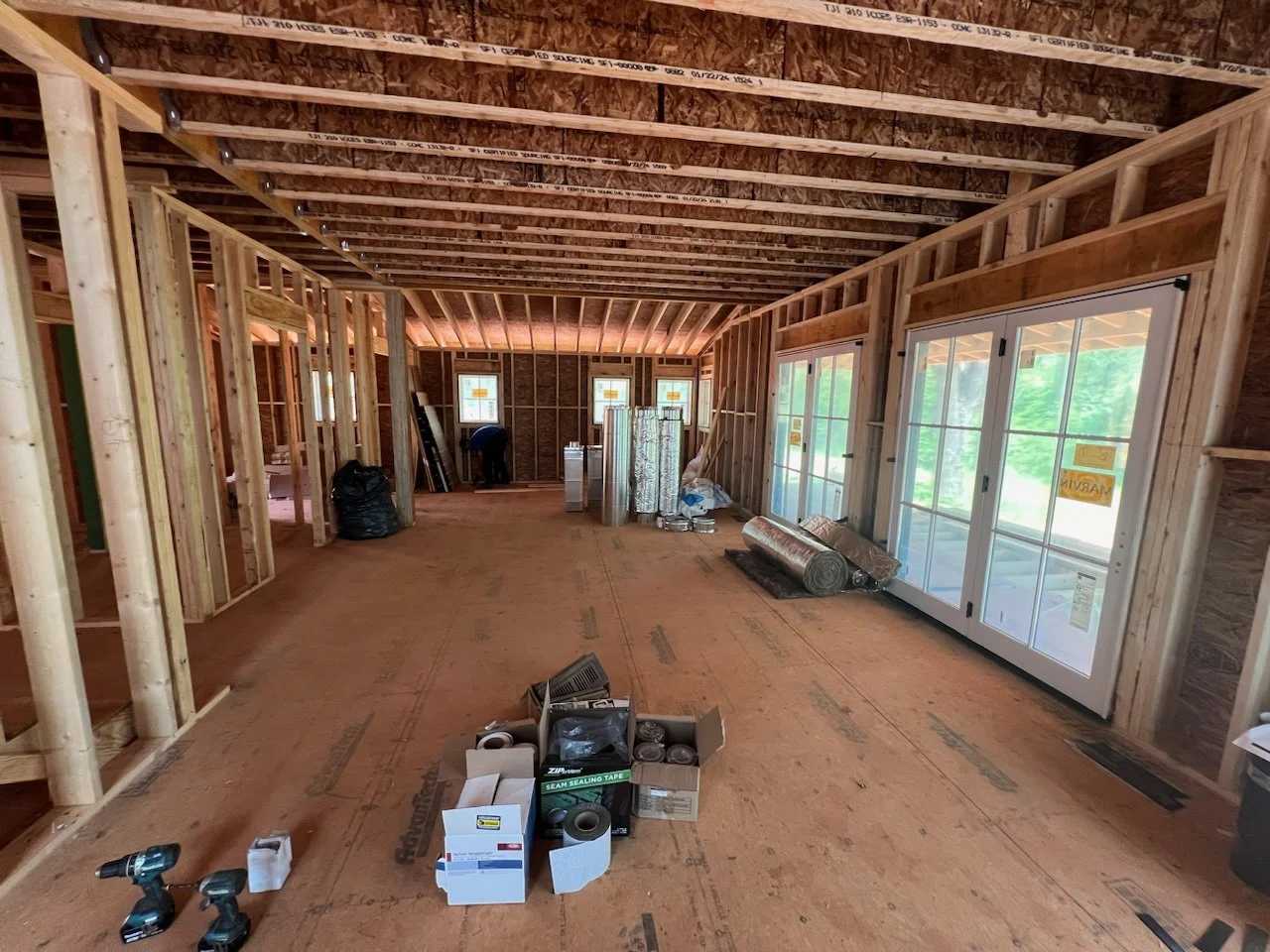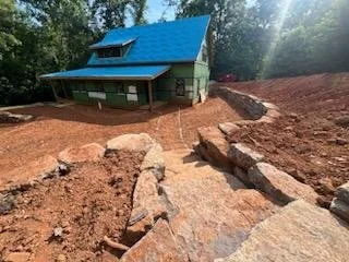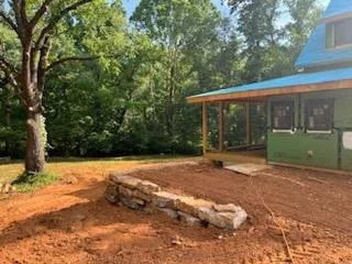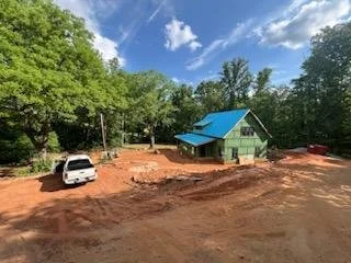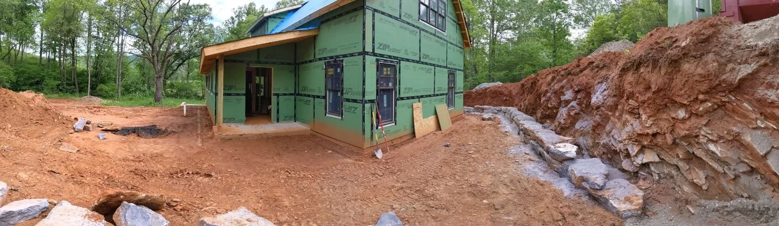 Set on a beautiful sloping site uphill from a tree-lined creek, this new build takes advantage of the land with a wrap-around porch off the kitchen/dining/living. A series of walls creates space for future gardens both visible (flowers) and usable (herbs). The house was sited with consideration for existing mature hardwood trees. A first floor studio and a second floor office compliment this 3-bedroom house.